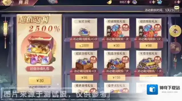 超值命魂礼包:内含命魂石任选三选一*15,元宝*300,售价30元,活动期间限购1次。