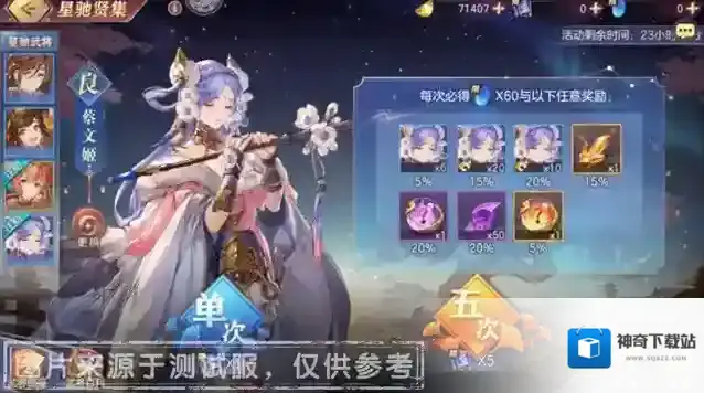 祈愿时将消耗活动限定道具「辰星金轮」、「辰星银轮」其中之一,每次祈愿必定获得「辰星碎片」*60以及奖池中的命魂觉醒信物、命魂进阶养成材料、元宝等稀有资源。