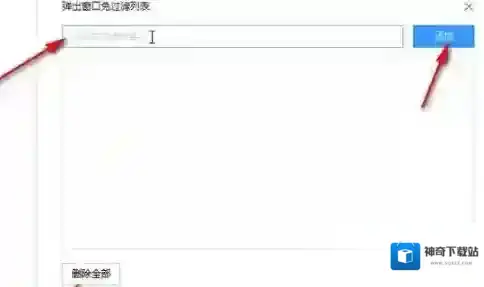 4、在下方窗口中输入需要允许弹窗的网页地址,并点击添加按钮。