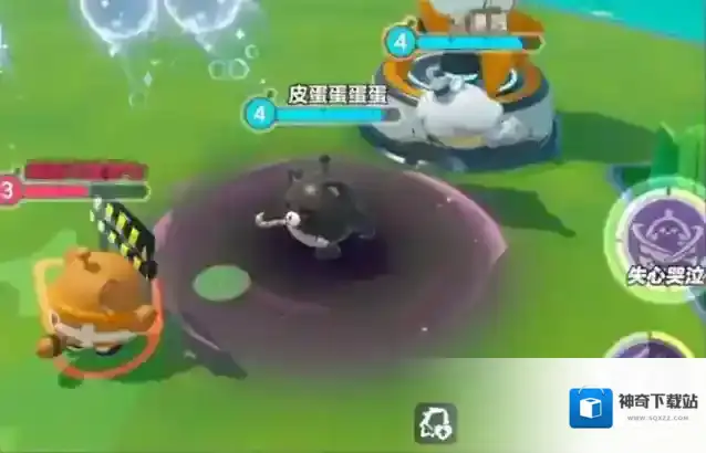 二技能“失心哭泣”施展终极技能“索要拥抱”,失心熊朝一名敌对蛋仔飞扑过去,紧紧地拥抱住对方,令其无法行动并受到伤害。