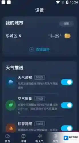 5、点击城市,用户可以新增城市、关闭天气推送等等。