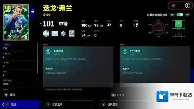 弗兰增能属性为无球跑动 +3,进攻意识、速度和加速的增强让他的突破势不可挡!