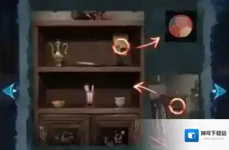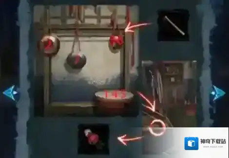 12、将布娃娃摆到后台的神龛上后获得新的线索,按线索将仓库陈列架上的戏曲道具如图摆放,可以获得玩具球。
