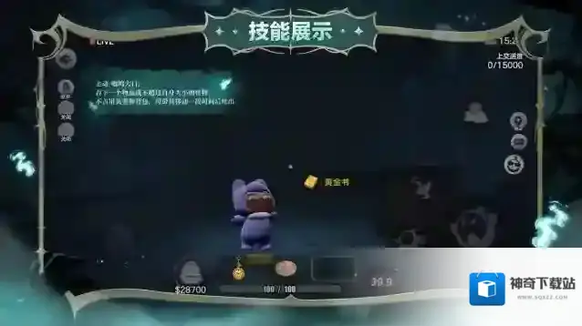 主动-嗷呜大口:吞下一个物品或不超过自身大小的怪物,不占用负重和背包,可带其移动一段时间后吐出。