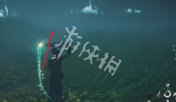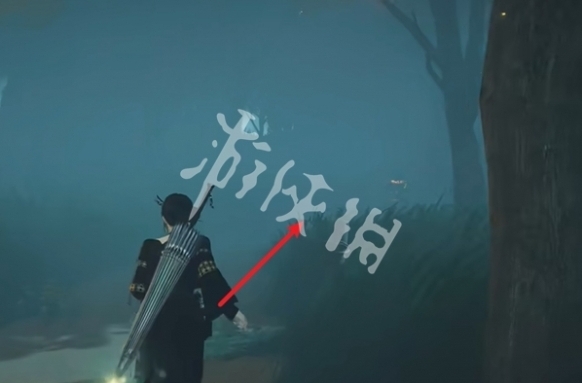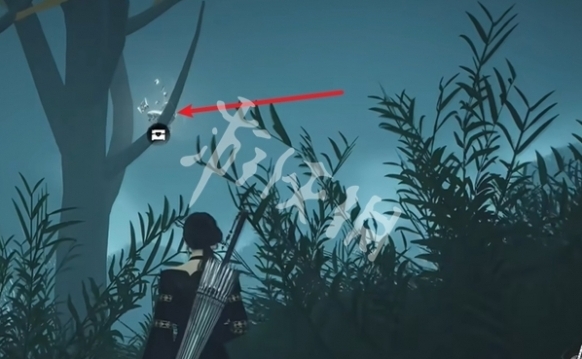 22、回来后,按照图中的箭头方向走,即可在树上看到宝箱。
