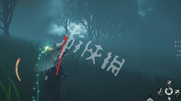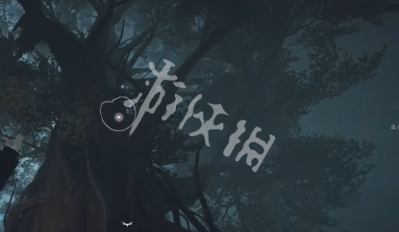 4、走到图中的位置,会显示没路, 调整视角,树上有个宝箱。