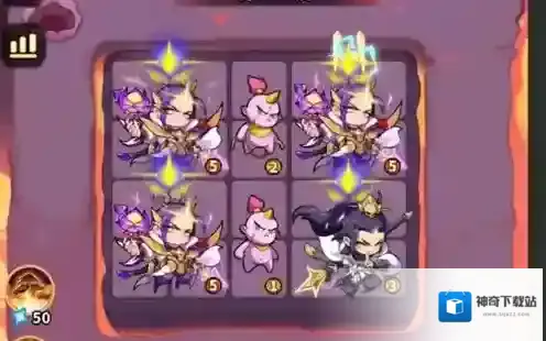 1.金角大王可以为相邻雷系英雄增加攻击力,因此在实战中,一定要记得在中间摆放一个金角大王,可以在前期有效提升我们雷系英雄的输出。