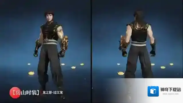 岳山-龙之影·过江龙:立领无袖短褂搭配盘扣,饰有金色龙纹与兽首腰带,尽显硬朗霸气。