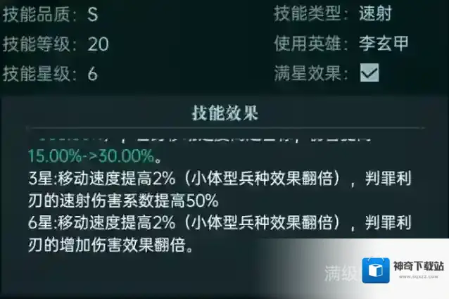 李玄甲固有技能为判罪利刃,技能效果如下图。