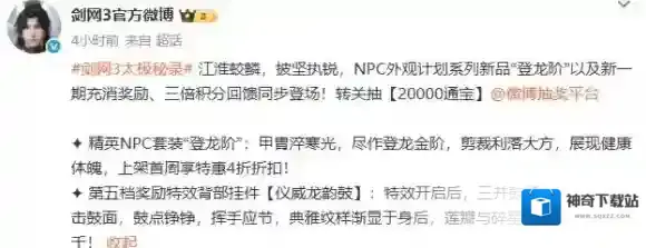 《剑网3无界》是一款融合江湖元素的开放世界游戏,这次新出的登龙阶外观让玩家直呼惊艳。小编最近在论坛看到不少玩家讨论这个新时装,据说外观原型是太极宫秘境的首领。虽然原价有点小贵,但首周折扣后价格直接砍半,看来是时候准备入手了。感到兴趣的朋友和小编继续往下看吧!