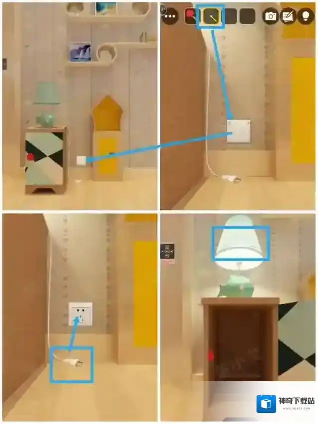 10.点击插孔面板,用螺丝刀拆下面板上的螺丝刀,拆下面板,插入插头,获得线索