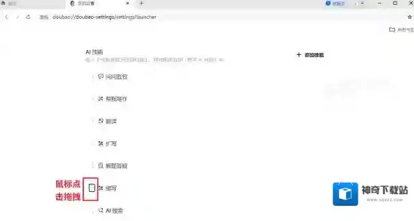 2.在此页面,鼠标指针点击AI工具左侧便可以进行拖拽,前五个AI工具会直接显示在窗口模式的首页。