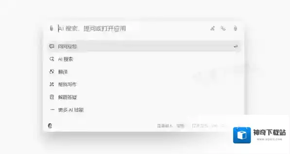 4.使用快捷键后,便可以调出豆包的窗口模式(AI启动器)了,可以看到窗口模式包含了许多AI工具,那么在哪里可以替换这些AI工具呢,接着往下看吧。