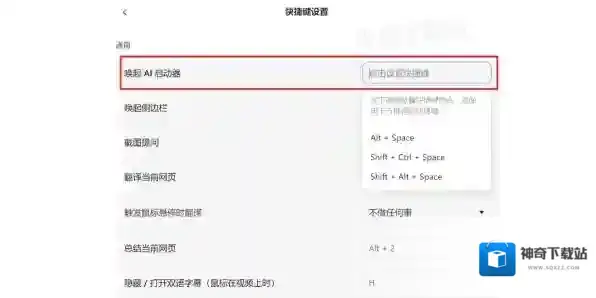 3.在第一行“AI启动器”右侧设置快捷键,注意不要键位冲突。