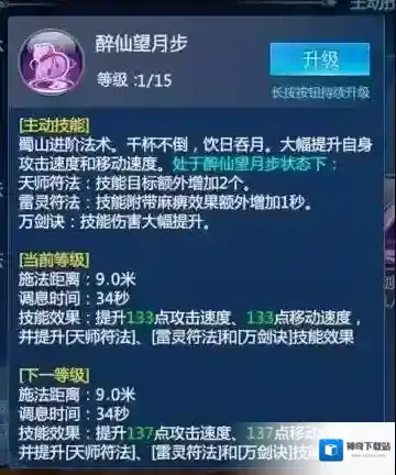 简评:蜀山技能CD较长,在前期可升级御剑术补充伤害,中后期技能点数较为紧俏,不建议升级普攻技能。