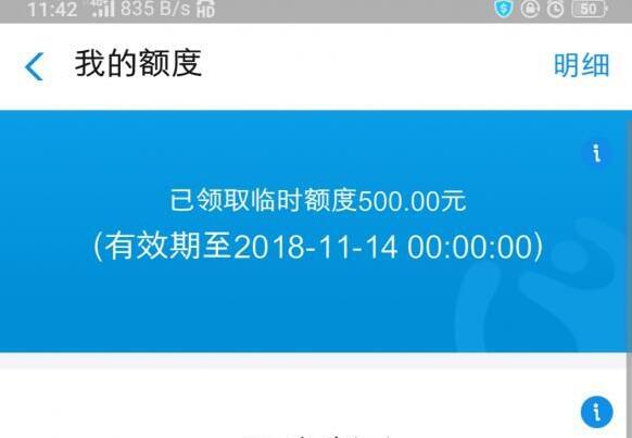 4 )所提升的临时额度的使用有效期自领取之时起, 到2018年11月13日24点止,到期未使用的临时额度将失效;
