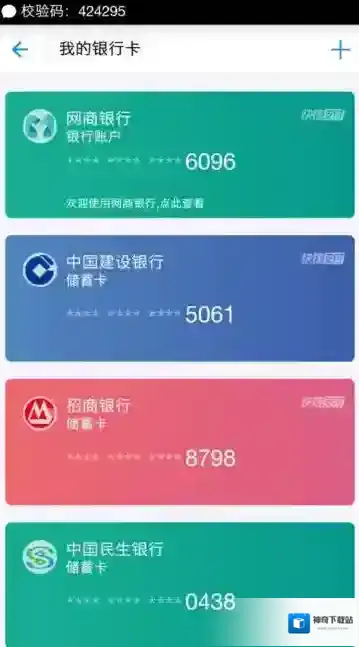 进入银行卡后点击右上角的“+”,新增绑定一张银行。