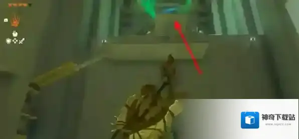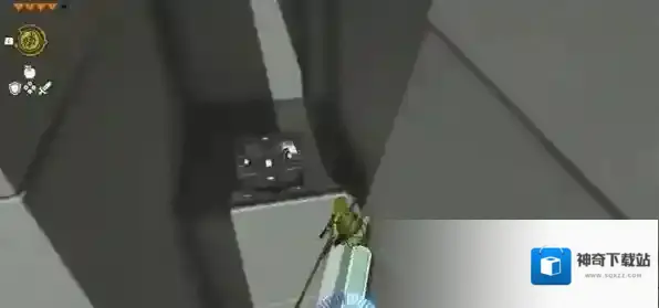 来到前方区域后先使用两个石柱成一个简易的平台,来到角落中的凹室处举起再放下。