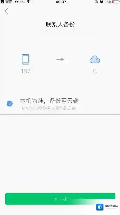 9、进入下一界面点击“开始”进行同步,将手机中的联系人备份至云端,联系人备份好以后手机恢复联系人完成。