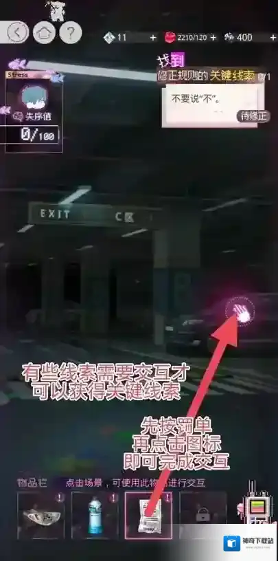 在密室探索过程中,选中道具后,点击场景内的互动区域,使用已收集到的道具进行交互可以获得更多道具,利用手中的道具积极探索,直至找到[关键线索]。获得关键线索后,将结束该轮次密室探索。