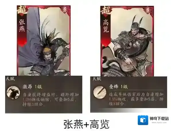 顶配副将为周仓和高览,周仓可保buff不掉,高览配合 威震华夏 提升攻击力。