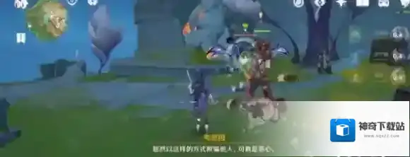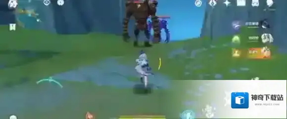 2、碰到下方的蓝色虚影后,然后夸恩因就会帮助我们完成战斗。