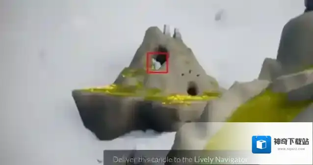 3、接着回到主岛山洞,拿走第二个有长条光柱的蜡烛,