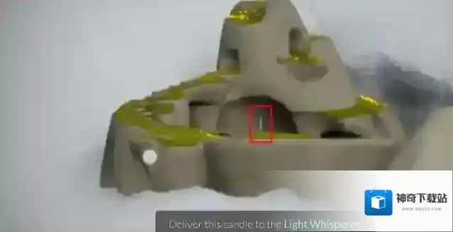 2、当蜡烛上出现长条光柱时,靠近就会出现互动按钮,点击就会拿走蜡烛,同时动画会提示你送往的位置,