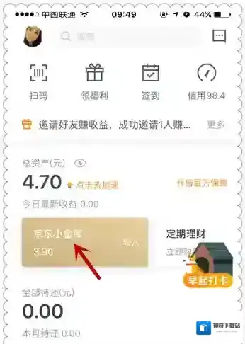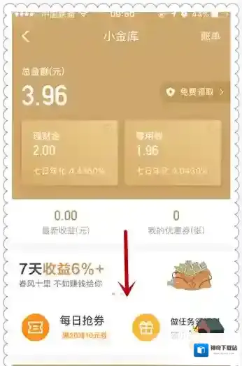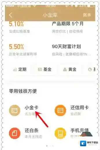 进入小金库界面之后,我们暂时还没有发现“小金卡”的踪迹,接下来我们需要向下滑动。