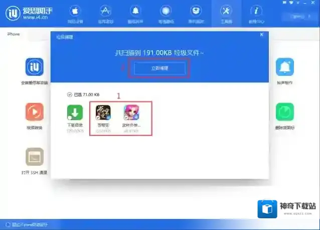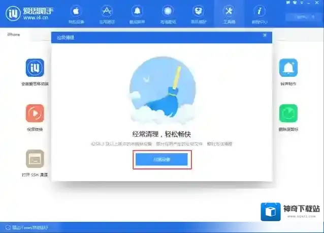 2、连接成功后在爱思助手的“工具箱”中打开“垃圾清理”功能;