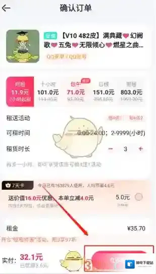 4、选择租赁的游戏时间,点击立即租用就可以了。