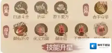 核心技能为4技能“定军心”,可有效降低战损,其他技能可少点或不点。注意避免与陈平安同时上场,以免技能冲突。