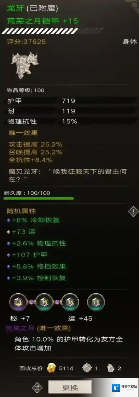 龙牙这个词缀也是一个万金油,攻击、召唤、全抗性,别等了有就带上。