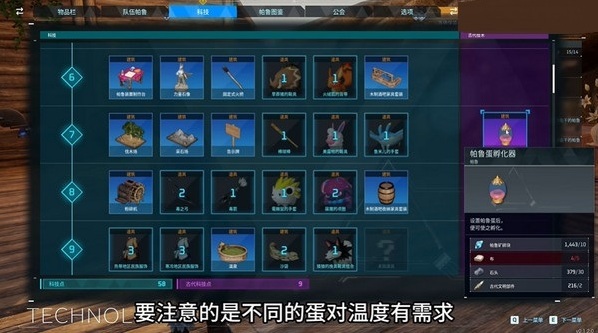 9、帕鲁蛋孵化器,需要古代科技点9级解锁。