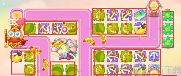 1、本关能够使用的炮塔是:毒针、月亮、船锚、风扇,回旋镖,这一关输出较多且都可以使用。