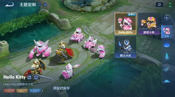 HelloKitty小兵拥有的特性为小兵共享加载打气攻击特效局内打气结算展示。