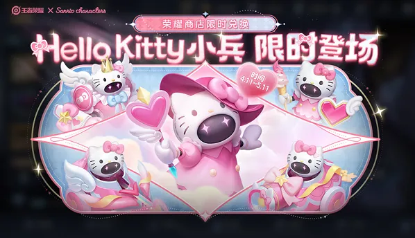 HelloKitty为传说品质小兵,为三丽鸥官方联动小兵,采用大量联动元素和粉红色调。