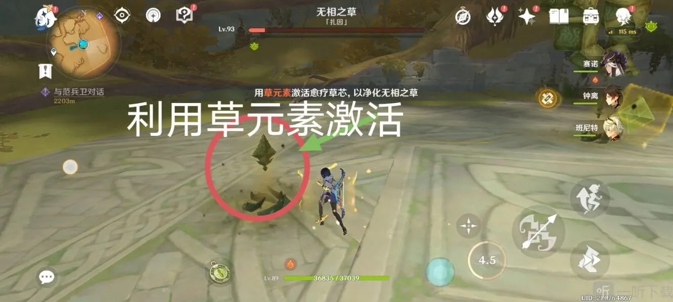 无相之草会利用惰性的方壳保护自已,似乎因为某种侵蚀的影响而陷入了异常。抓住元素核心暴露在外的时机,才能有效攻击。在危急时会分数具有三项重物性质的愈疗草芯。利用草元素((推荐使用草神)打的还快一点!通过雷元素使其活化则能提高净化的效率。对无相之草的核心进行草元素攻击,也能为其进行净化。完成净化即能完成挑战