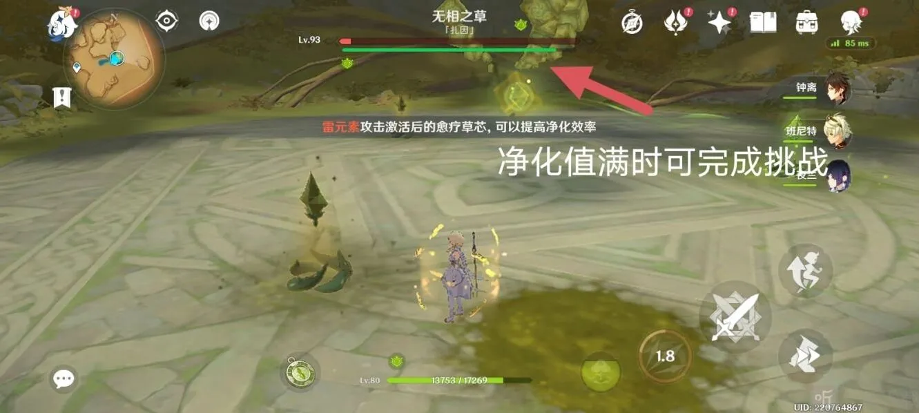无相之草血条下,绿色的能量条为净化值,净化值满时可完成挑战! 用两张图表示一下!