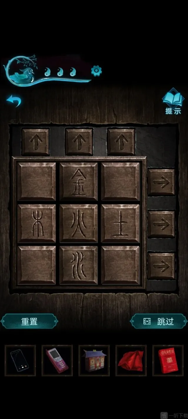 别走上面和尚送的盒子,把划片划到对应的位置得到小图腾旗,回客厅插在小车上,开动风扇撞倒扫把,就可以进去了。