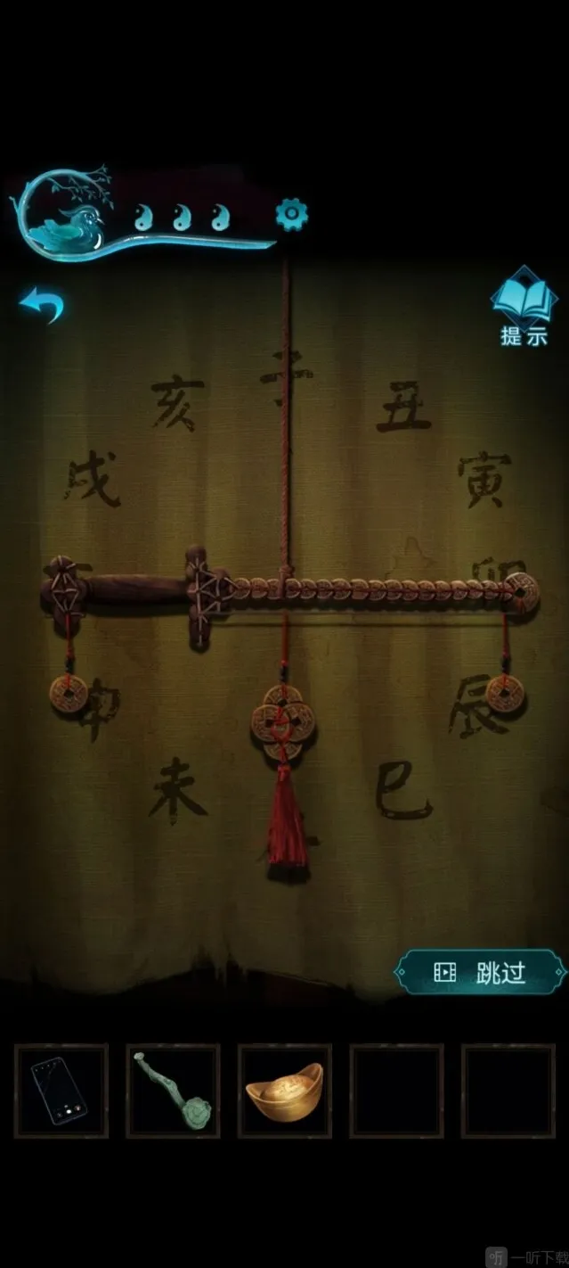 12、开始小游戏,拉动铜钱,让铜剑指向辰