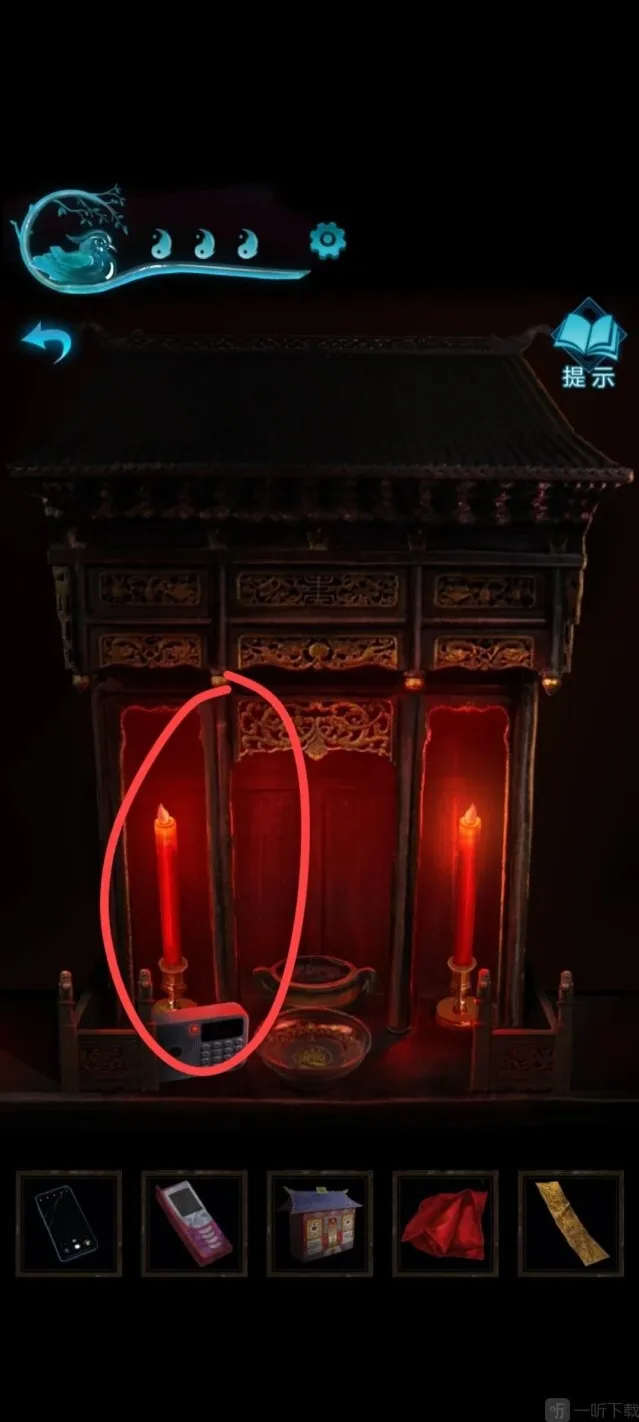 36、点击供台,把两个符纸贴上去,把香插上,把房子放到空白盘子上,然后打火机点燃。第二章游戏结束