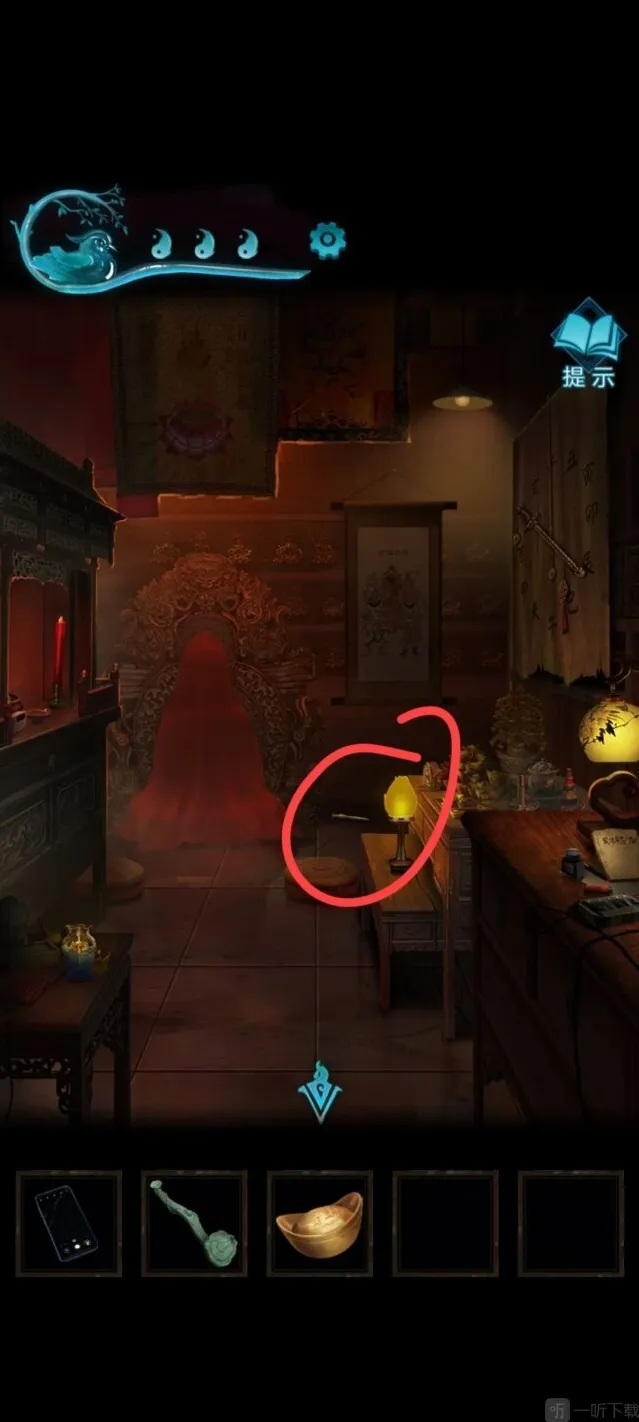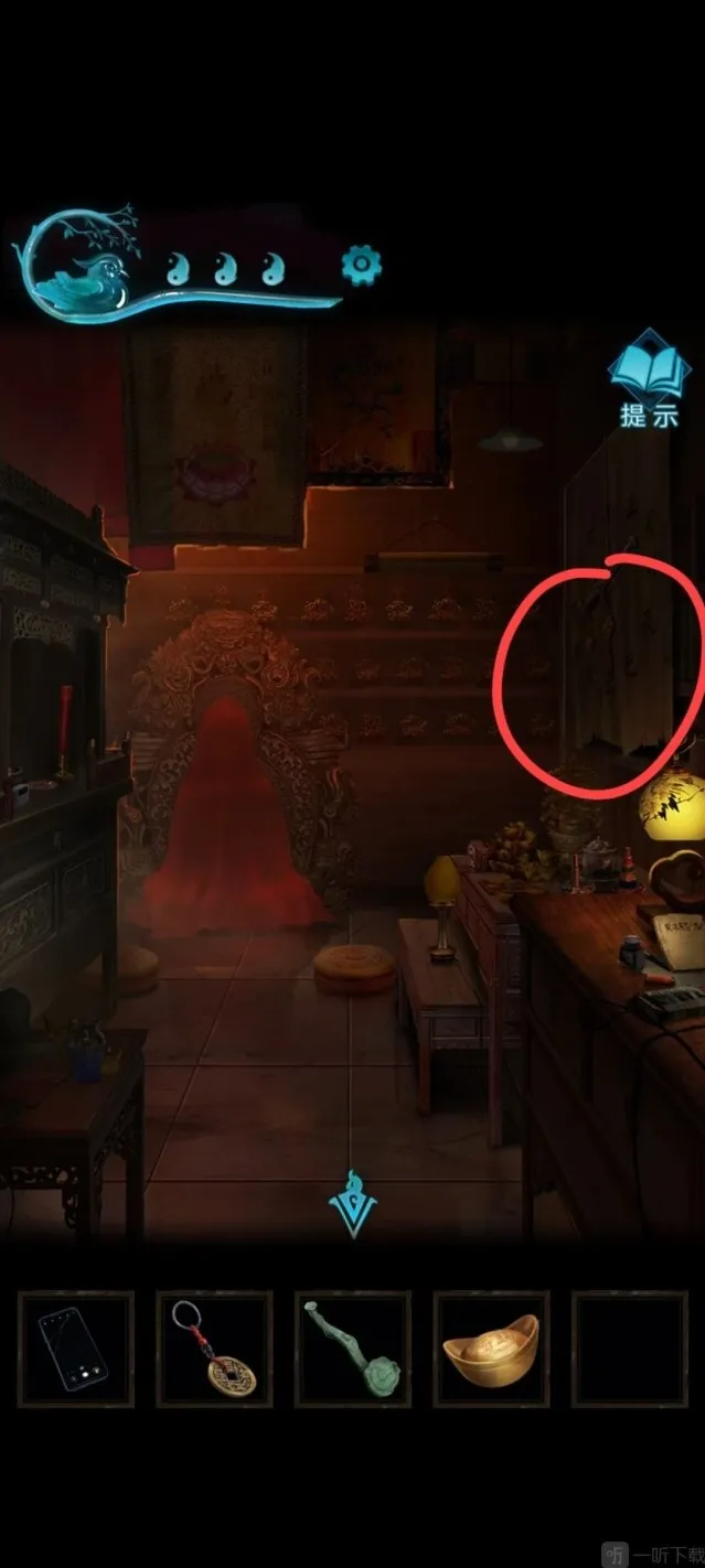 9、使用香灰铲将门打开,即可来到下一场景:院子。