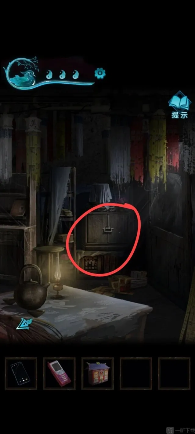 16、回到初始房间,点击右侧小柜子。