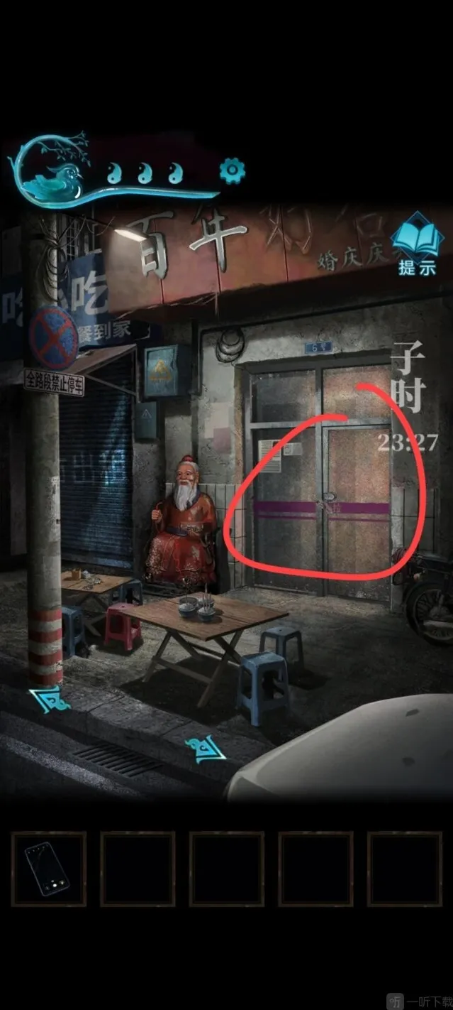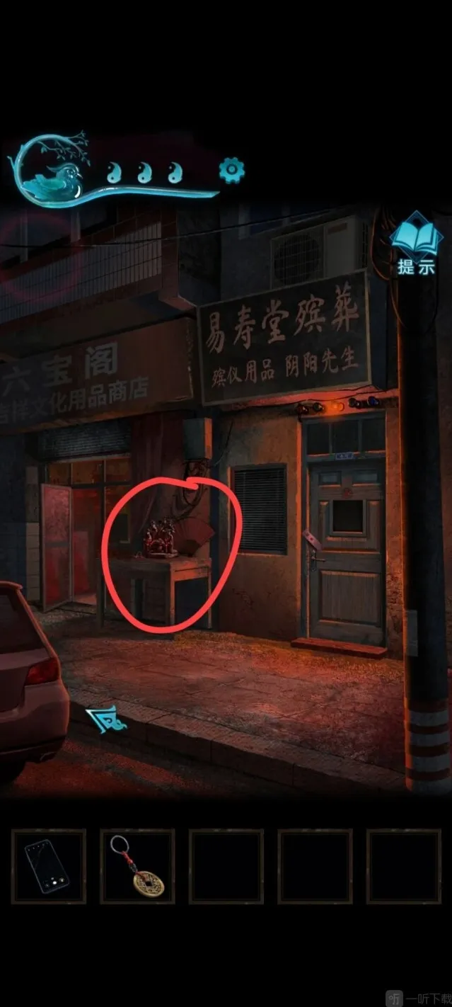 到车的位置,按照顺序点香,比较难点,点完获得字迹,可以解开山洞前面石狮子脚底下的机关,获得一把钥匙。