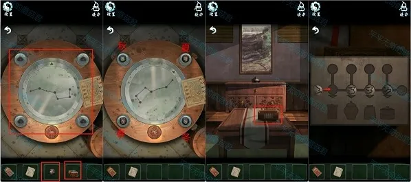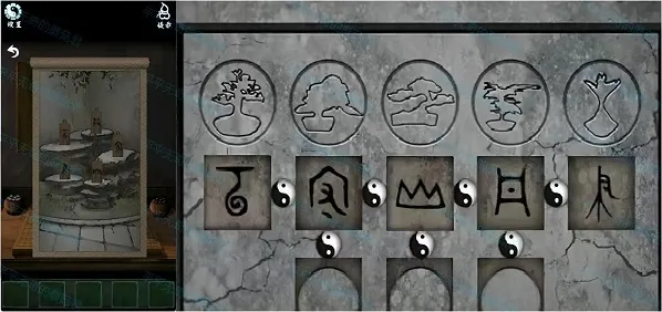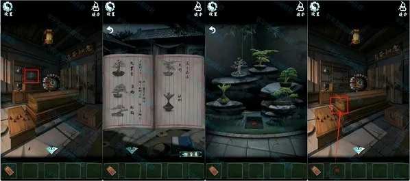 十一、打开正屋后,拿到盆栽,退出房间,来到假山上,放上盆栽,再根据之前的提示,移动盆栽的位置,然后获得八卦盘,之后再来到棺材的凹槽处,放上八卦盒。