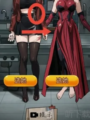 7、最后出现选项,我们先不做选择而是将管道中的猫分别移到她们身上,最后猫在白发女子身上炸毛所以我们选择红色裙子的女孩即可闯关成功。