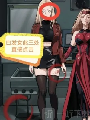 5、找出来到屋子里女人身上奇怪的地方,分别是嘴角的血迹、猩红的眼睛、六根手指、红色的头带,然后上划裙摆点击扭曲的脚踝;