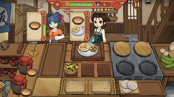 1、游戏开始,根据顾客的需求制作相应的食物。