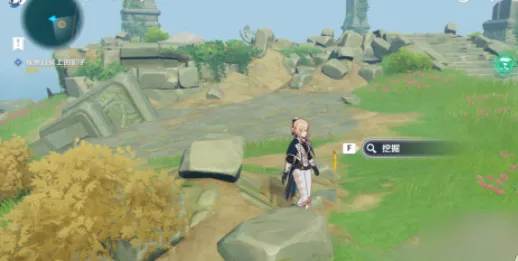 小岛左边图中所示位置点击挖掘有一个精致宝箱。